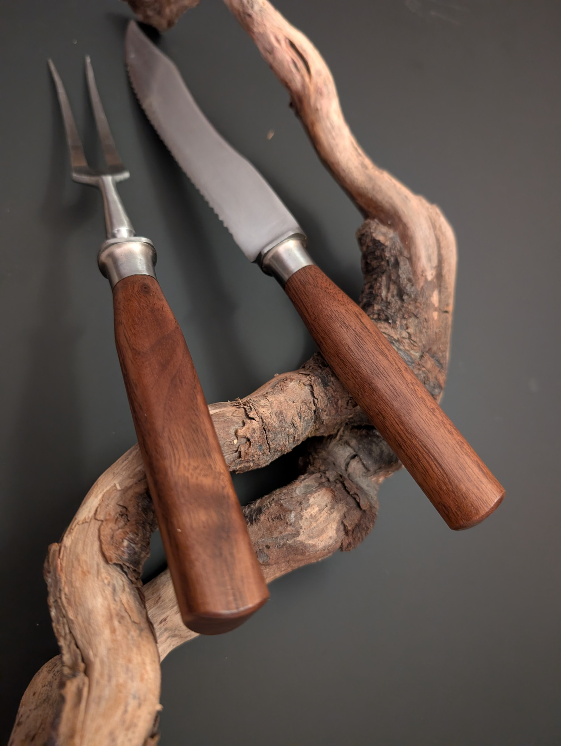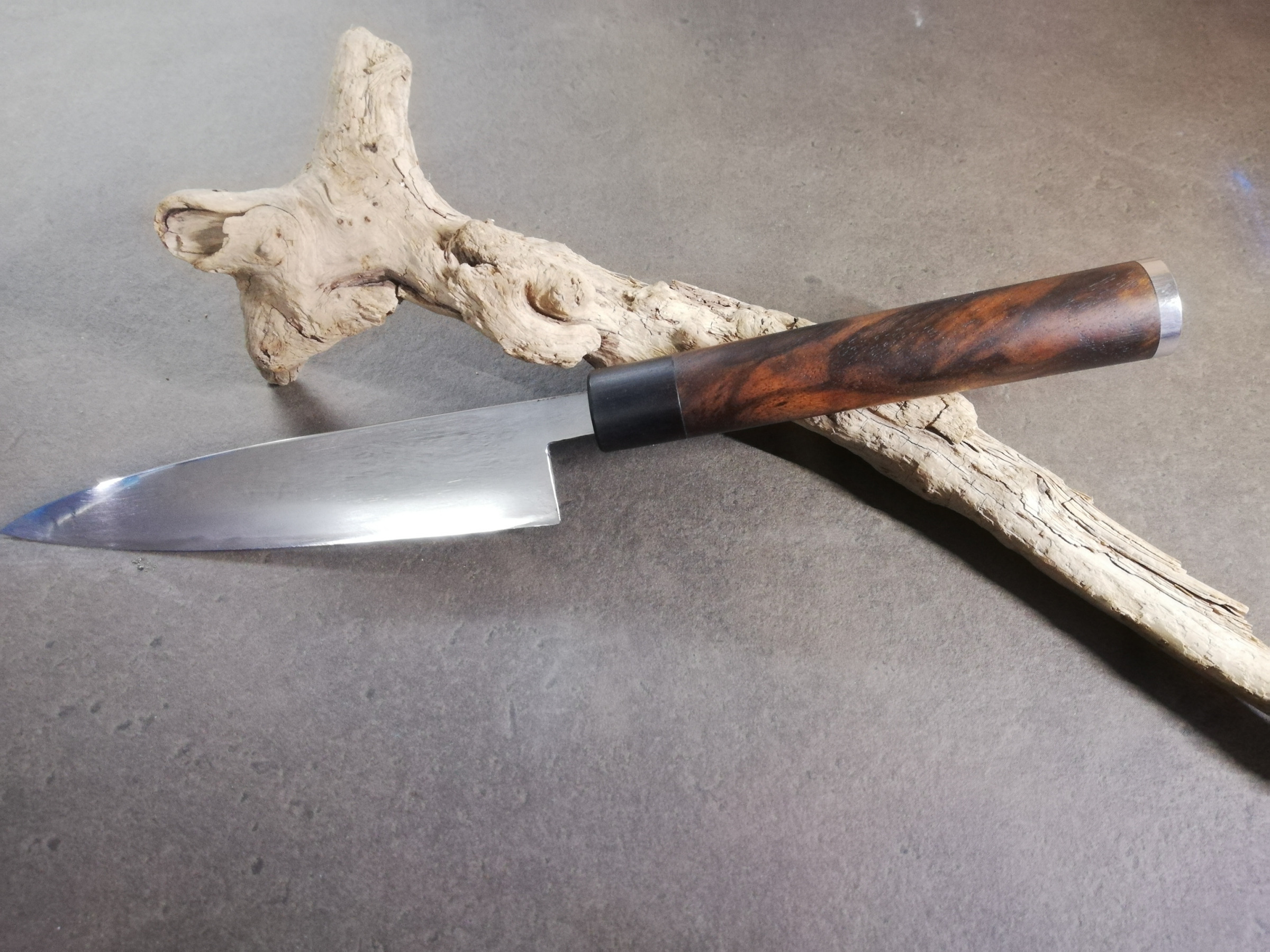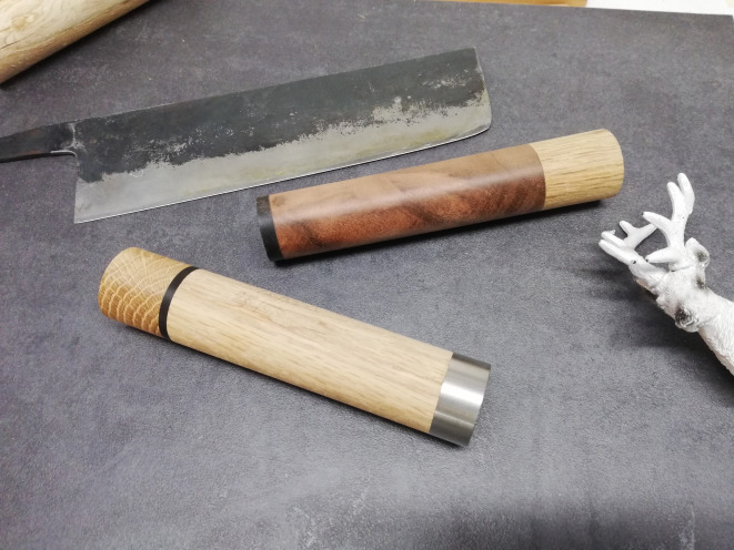 Ob das edle Walnusswurzelholz aus Anatolien, pure oder kombinierte Griffe aus heimischen Hölzern aus der Gegend... wie z.b. Ahorn, Kirsche, Apfel, Eiche, Eibe, Haselnuss, Loorbeer etc..Alle Hölzer sind natürlich gerne gesehen! Mit Metallen oder Kunststoffen. Ob Griff-Rundlinge oder Schalen. Selbstgefertigte Messer mit Klingenrohlingen jeglicher Art setzte ich natürlich Gerne um! Auch Restaurationen von alten Messern, Bestecke oder sonstige wertvolle Sachen verhelfe ich gerne wieder zu neuem Glanz.