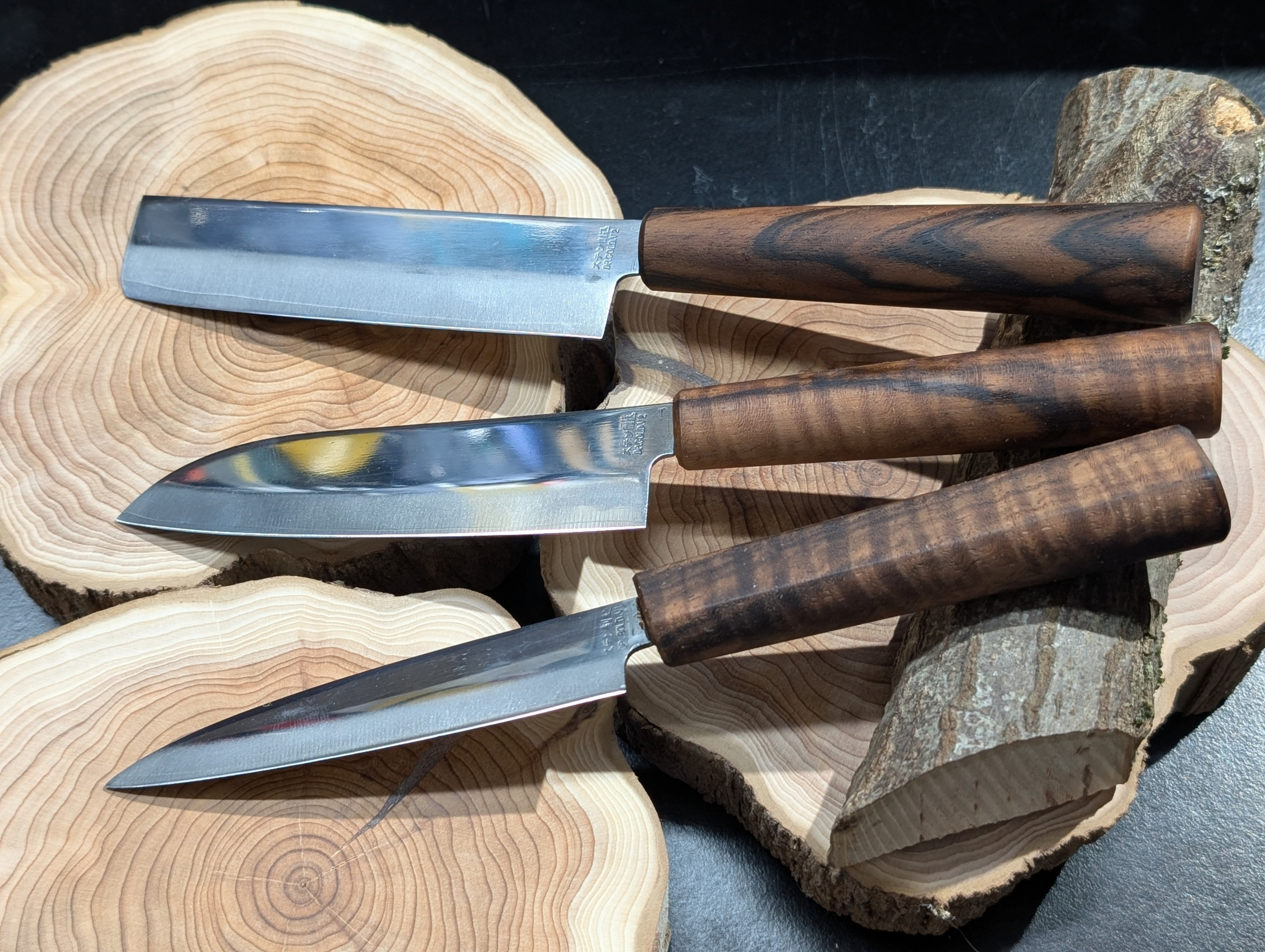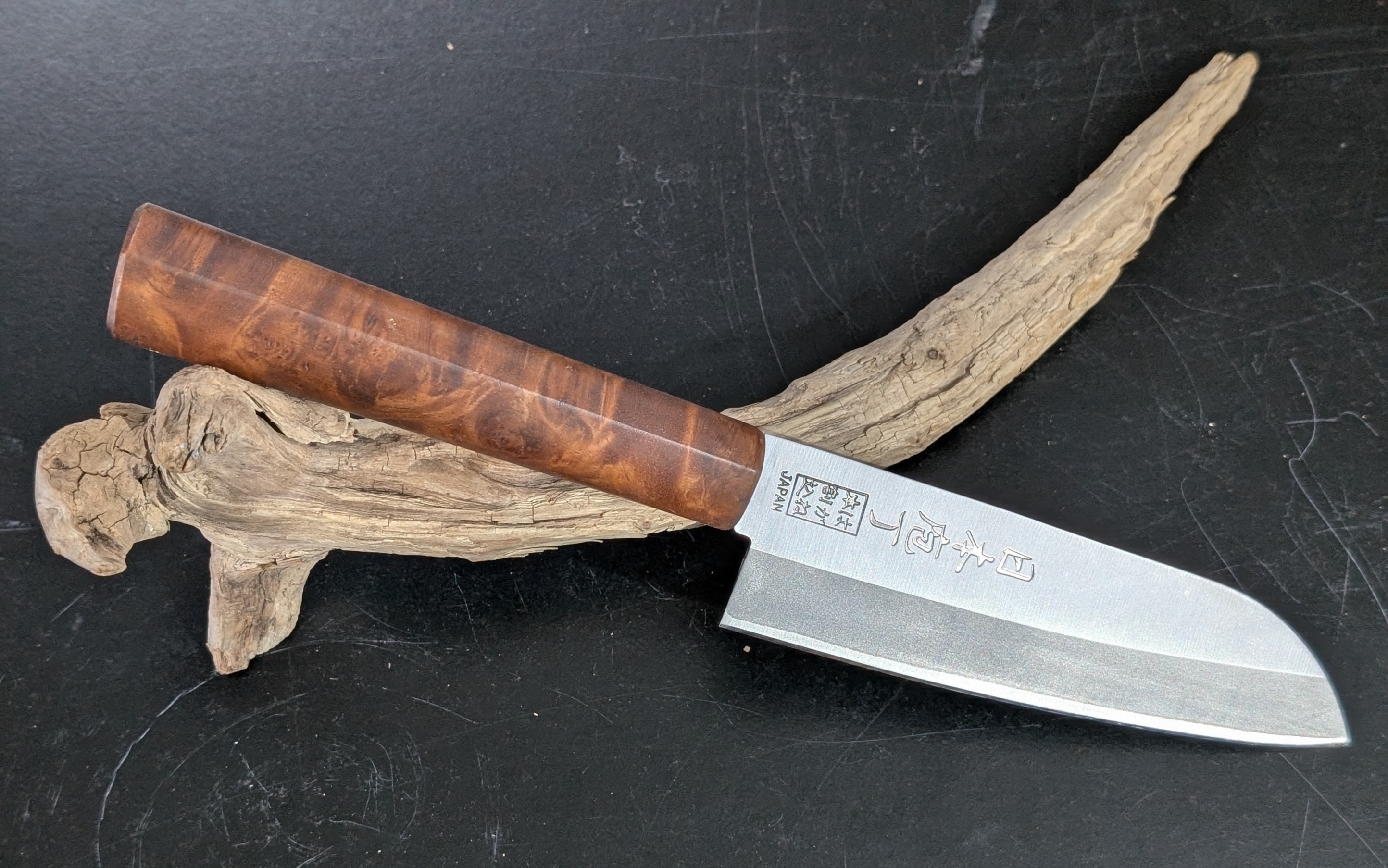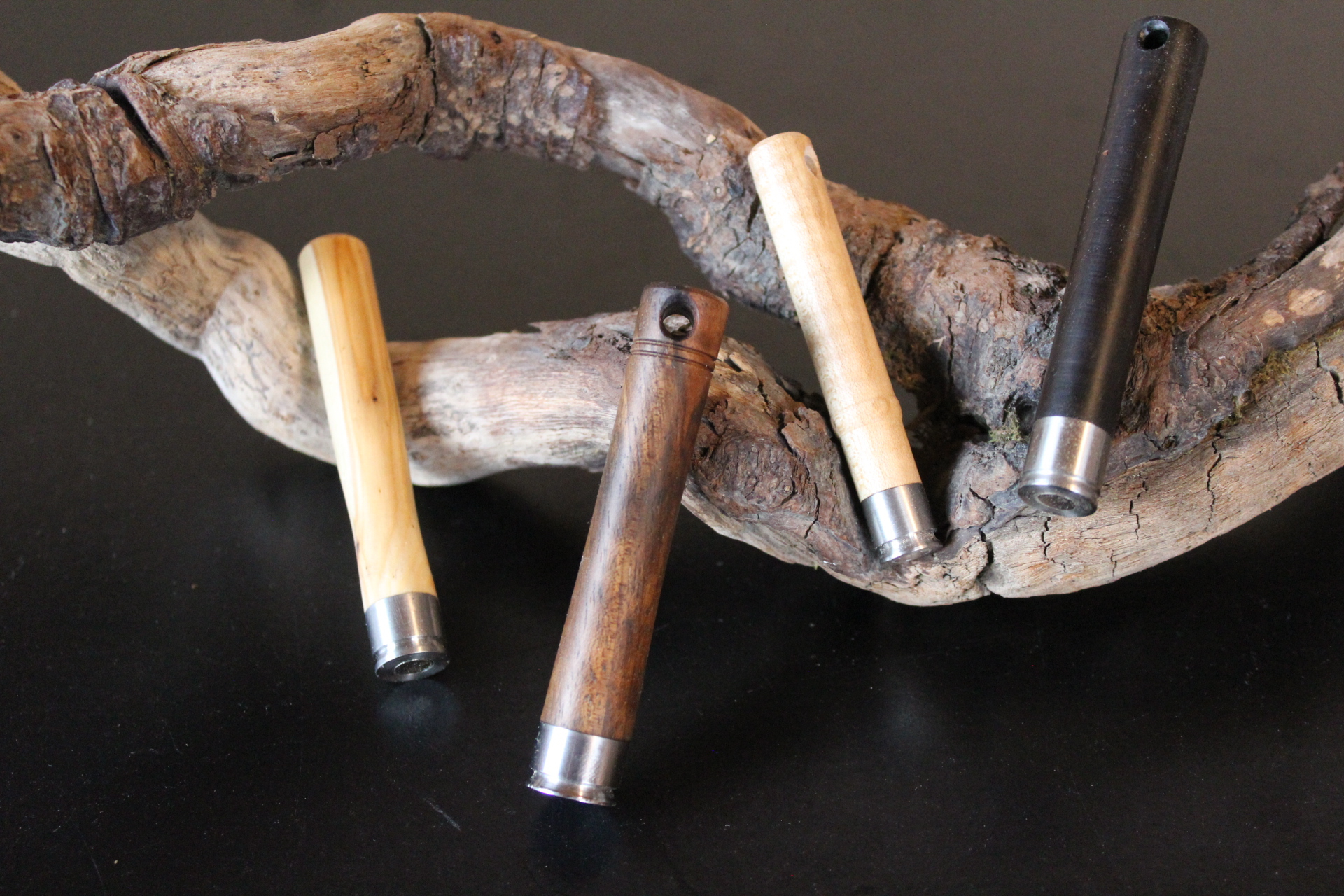Ob das edle Walnusswurzelholz aus Anatolien, pure oder kombinierte Griffe aus heimischen Hölzern aus der Gegend... wie z.b. Ahorn, Kirsche, Apfel, Eiche, Eibe, Haselnuss, Loorbeer etc..Alle Hölzer sind natürlich gerne gesehen! Mit Metallen oder Kunststoffen. Ob Griff-Rundlinge oder Schalen. Selbstgefertigte Messer mit Klingenrohlingen jeglicher Art setzte ich natürlich Gerne um! Auch Restaurationen von alten Messern, Bestecke oder sonstige wertvolle Sachen verhelfe ich gerne wieder zu neuem Glanz.
